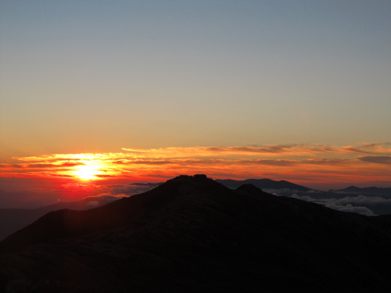 山頂からの御来光。前日の雨がウソみたいに360度スカッと晴れた。