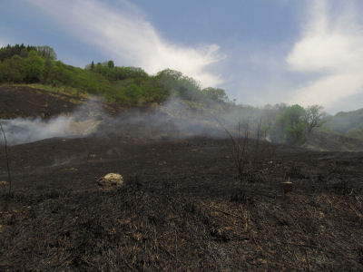 あと、カヤの上って普通の靴で歩くと結構すべるんですが、こういう風に焼けてしまうとずいぶん歩きやすくなりますね。