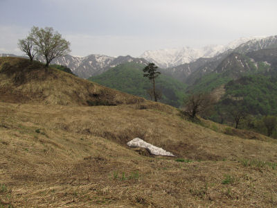 雪が残っている中で桜が咲いているというのがなんとも不思議な感じ。