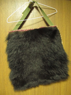 マタギの方からもらった熊の皮で、自分用の腰皮を作ってみました。