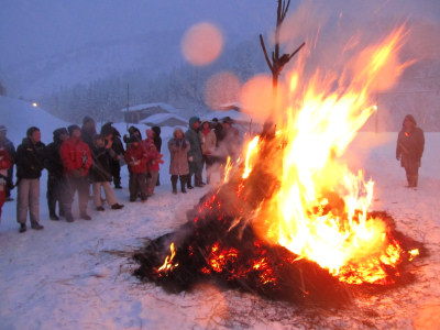 他にも火が燃え尽きて、中心の木が倒れた方向にある家には、その年子供が生まれるといういわれもあるそうで。