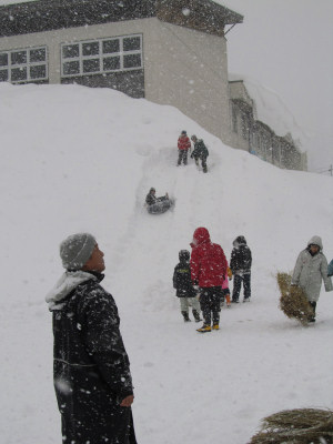 その間、子供らは道踏みも兼ねて周りで雪遊びをしたりしてしました。