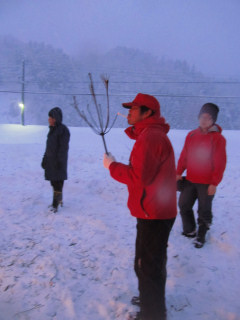 雪の降る中での歳頭焼きでしたが、冬のキャンプファイヤーかと思うほどの燃えっぷり。やっぱり火がつくとあったかいです。