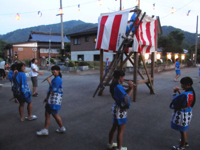 沼沢の盆踊りの笛太鼓は子供らが中心。