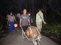夜、太鼓を叩いて「おっくりや~おっくりや~貧乏神おっくりや~」と言いながら集落の端から端まで歩いていき、その太鼓の音を聞いて各々の家から提灯を持って人が出てきます。